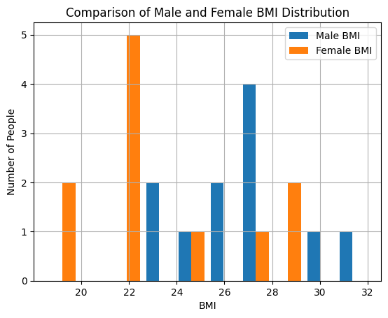 plt.title('Comparison of Male and Female BMI Distribution')